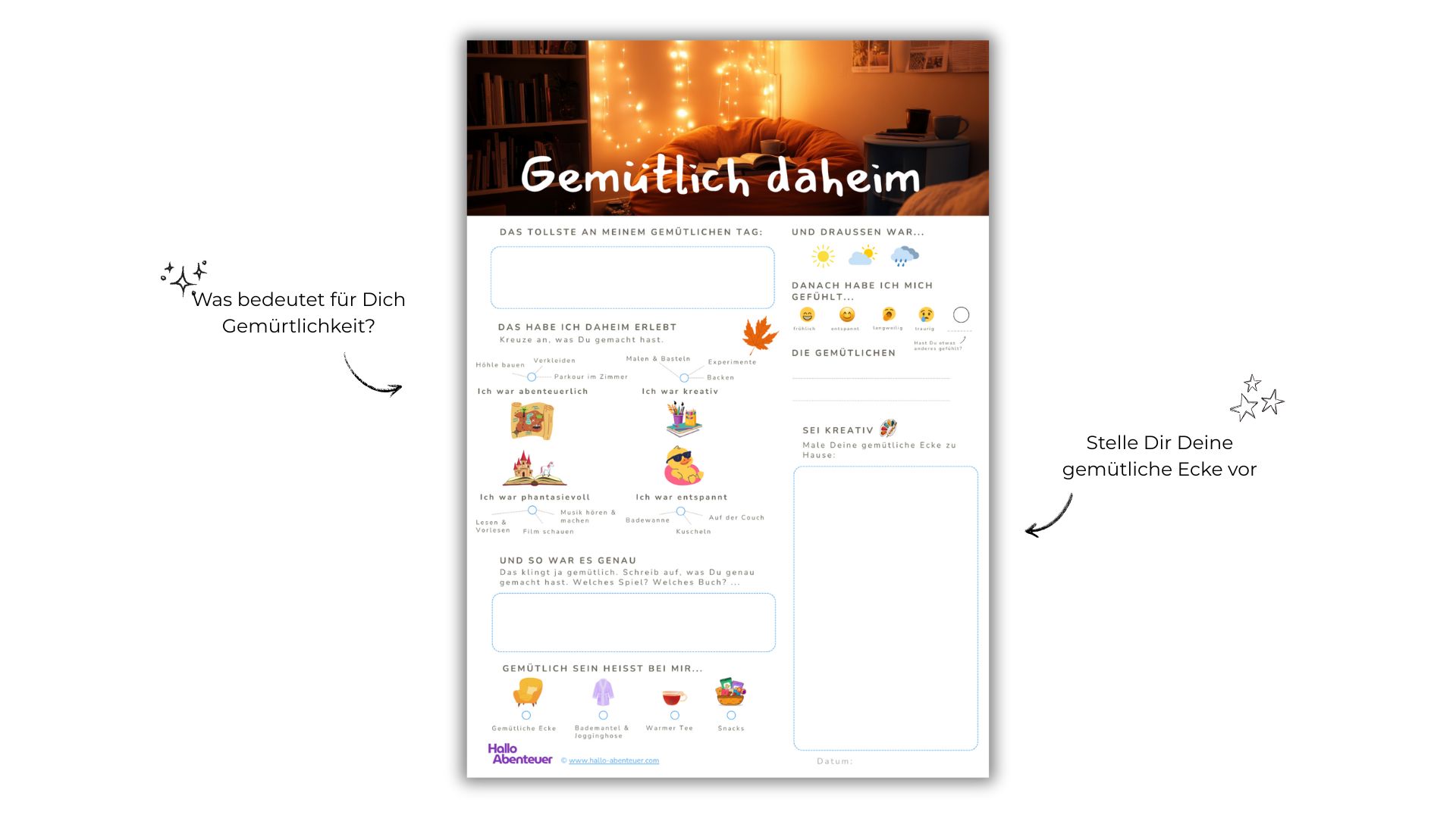 Mit unserem neuen Erlebnisblatt „Gemütlich Daheim“ könnt ihr einen besonderen Tag bewusst erleben.
